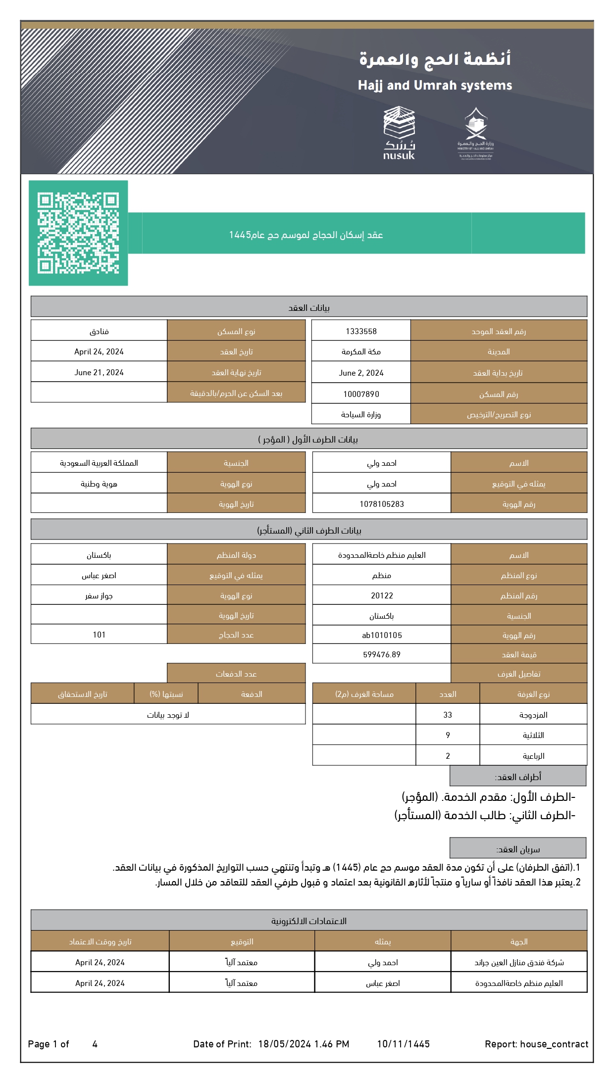Hotel Agreement Hajj 2024