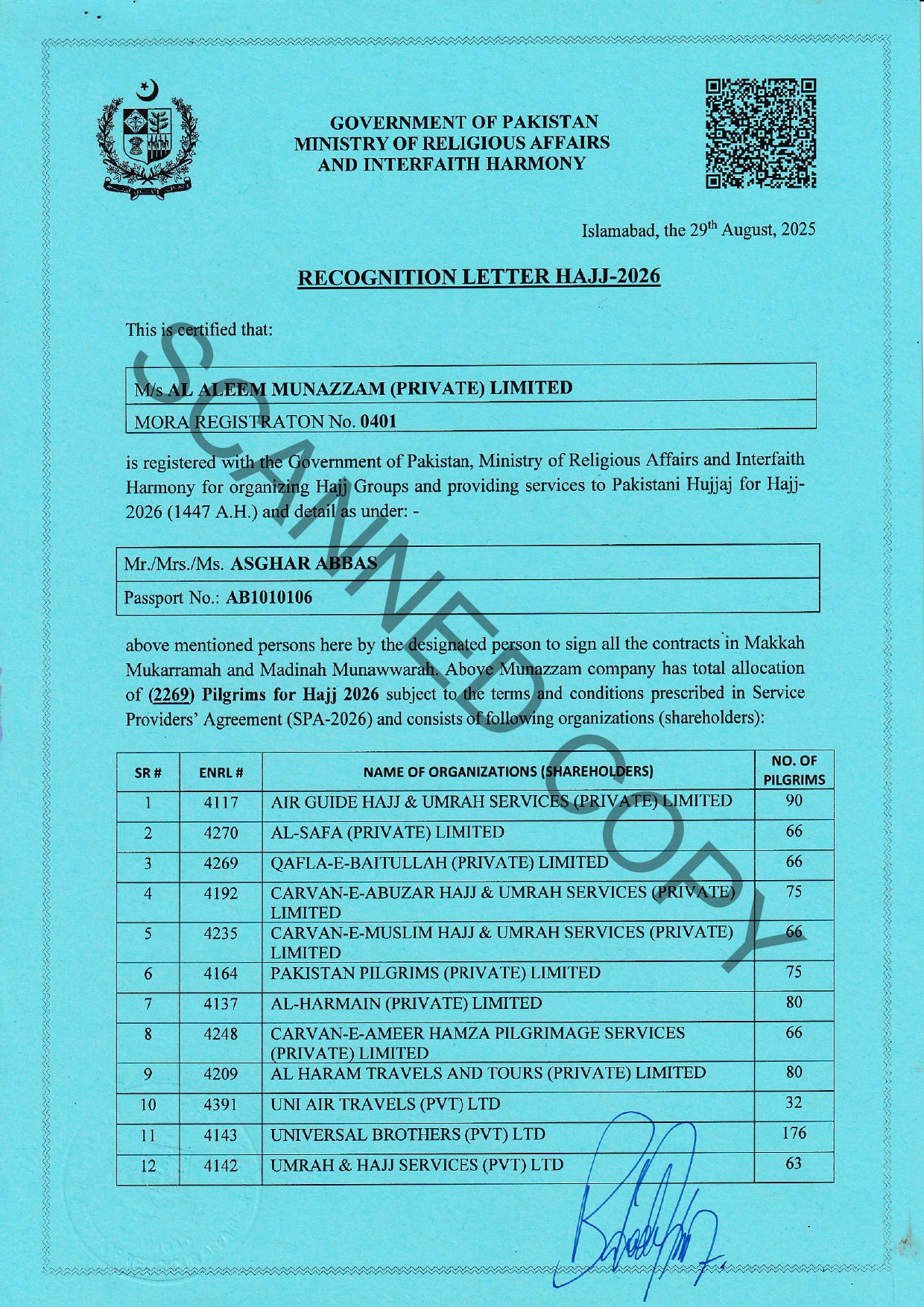 Recognition Letter - Hajj 2026