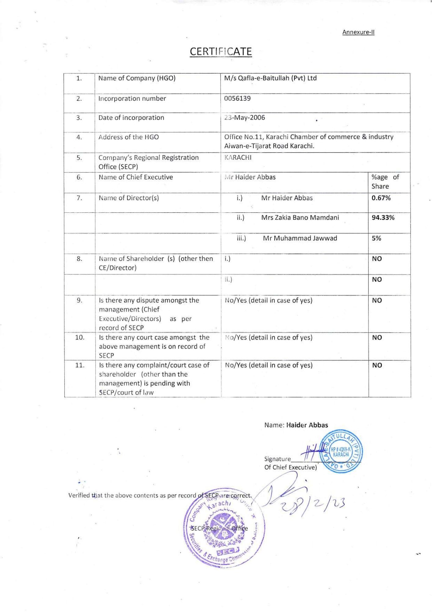 SECP Certificate